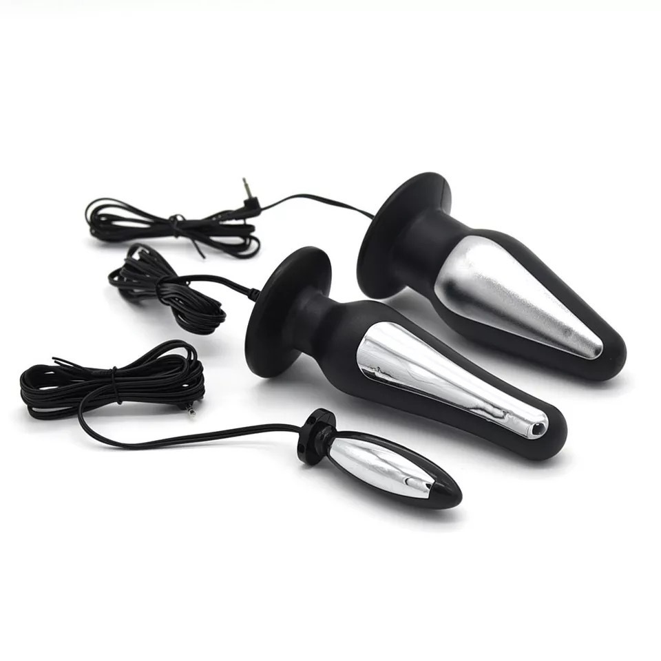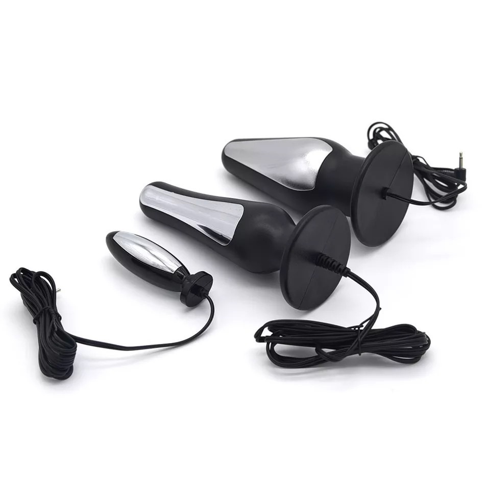 a choice of three anal plugs that can be plugged into an e-stim box for added wow sensation!